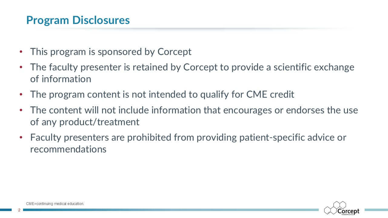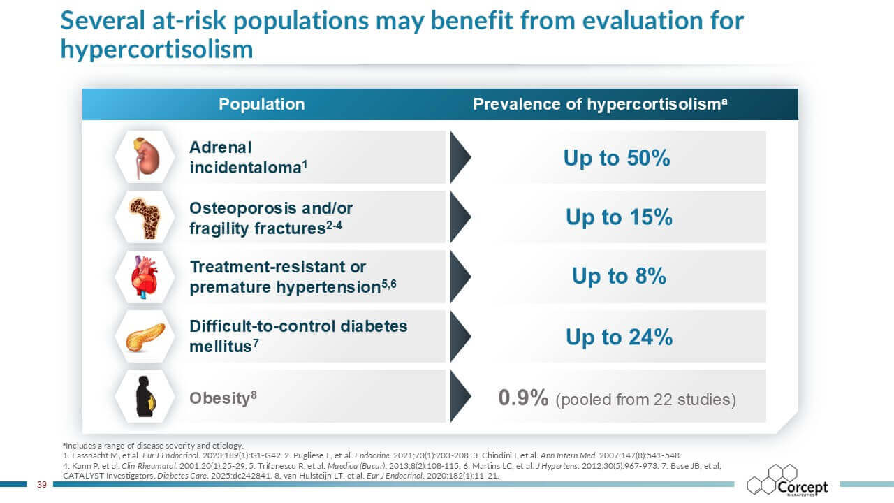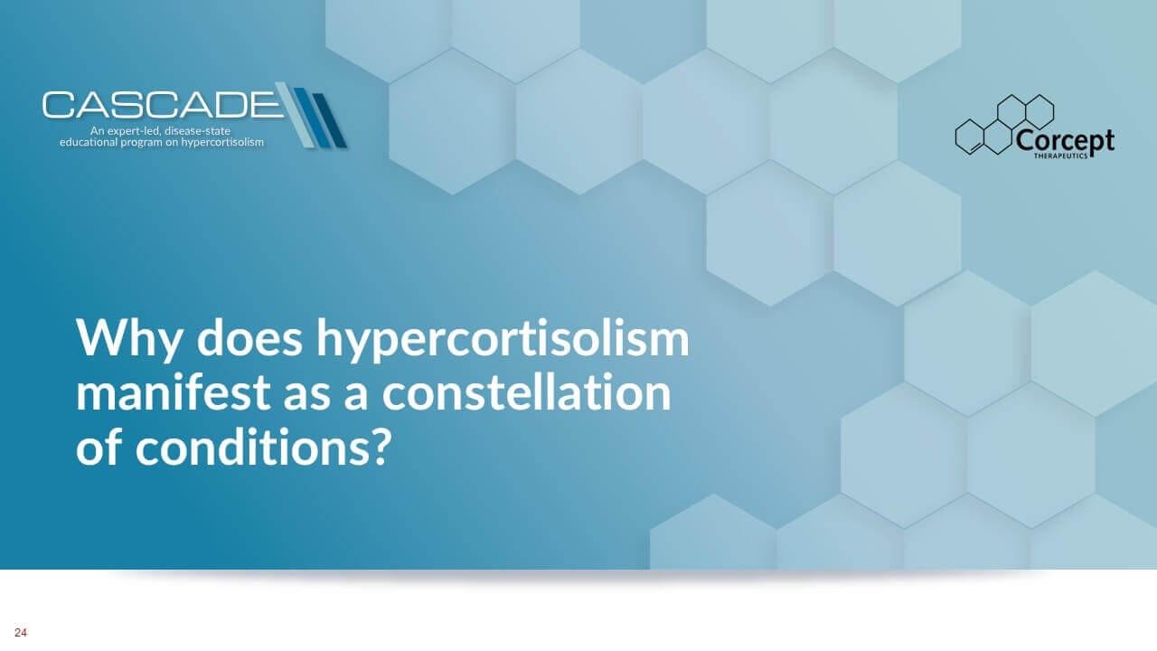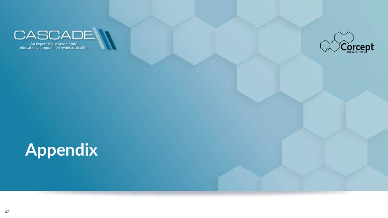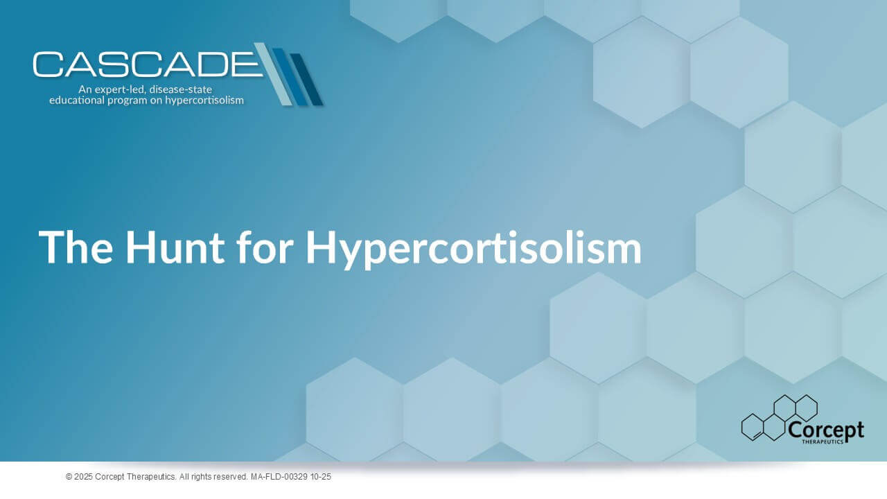CASCADE is an unbranded educational program dedicated to hypercortisolism. Developed in collaboration with leading U.S. and international faculty, it delivers evidence-based learning designed to improve recognition and diagnosis of this under-recognized condition. Programs are offered live or virtually, sponsored by Corcept and provided at no cost, creating accessible opportunities for clinicians to learn, engage, and apply practical insights in patient care.