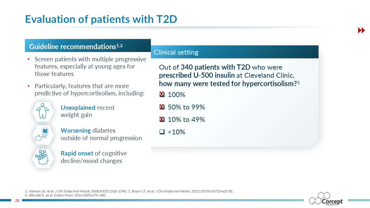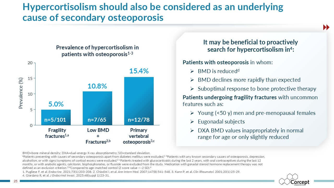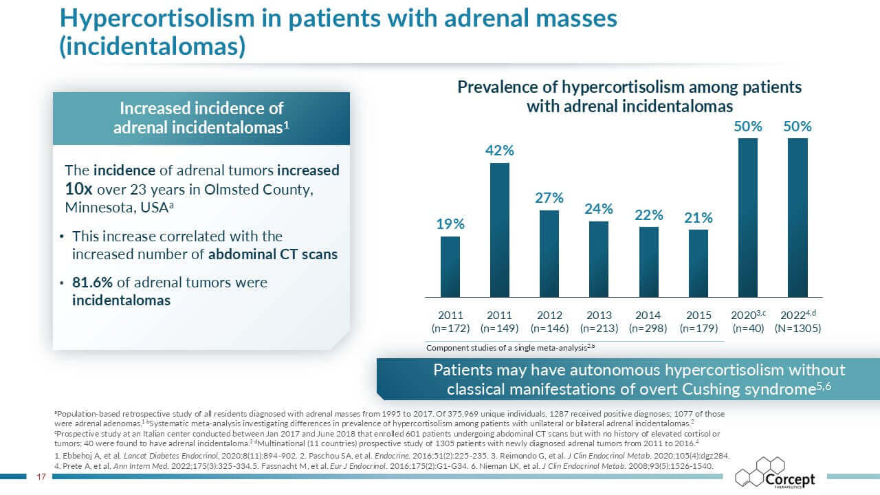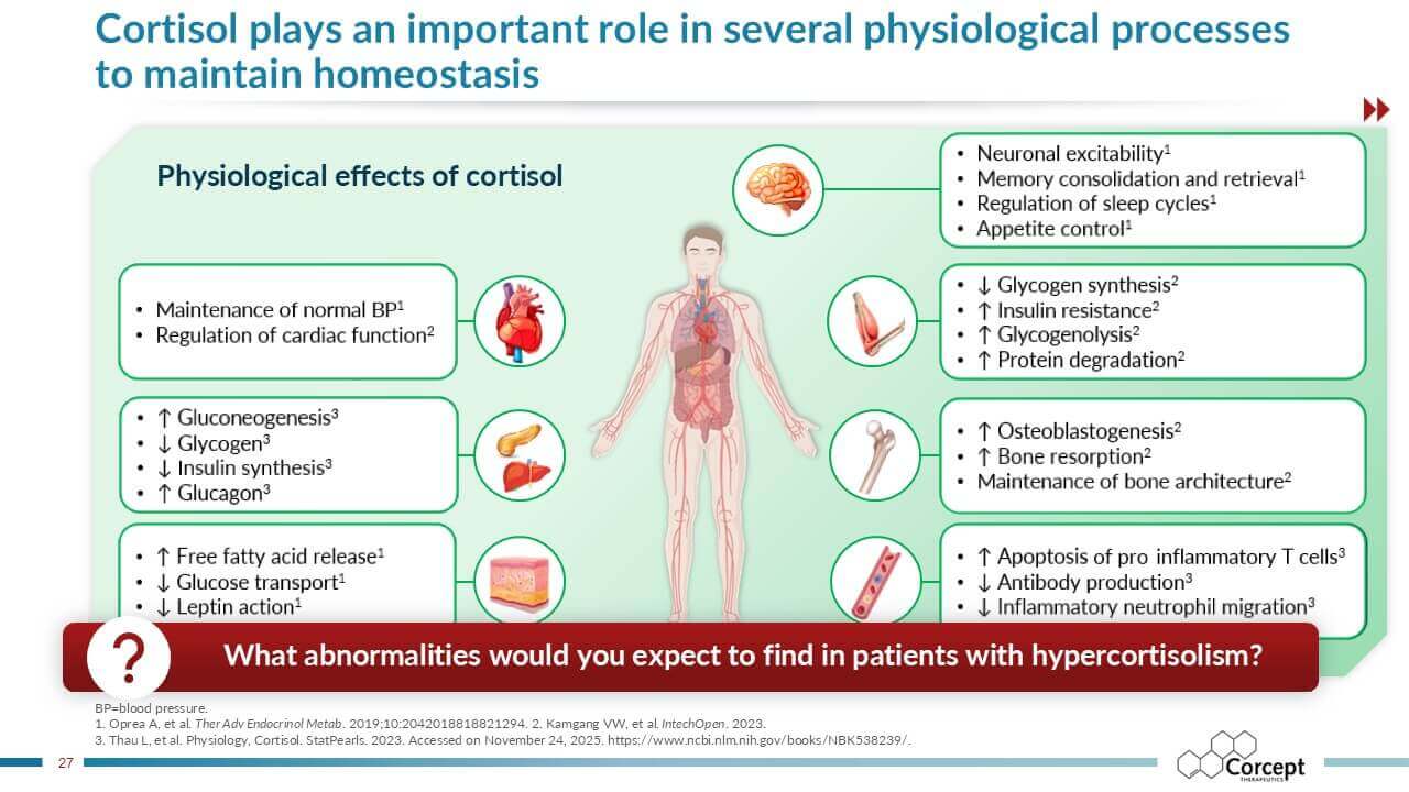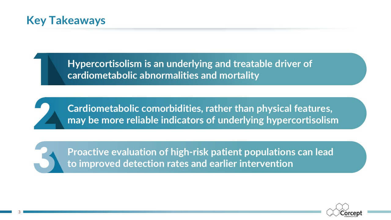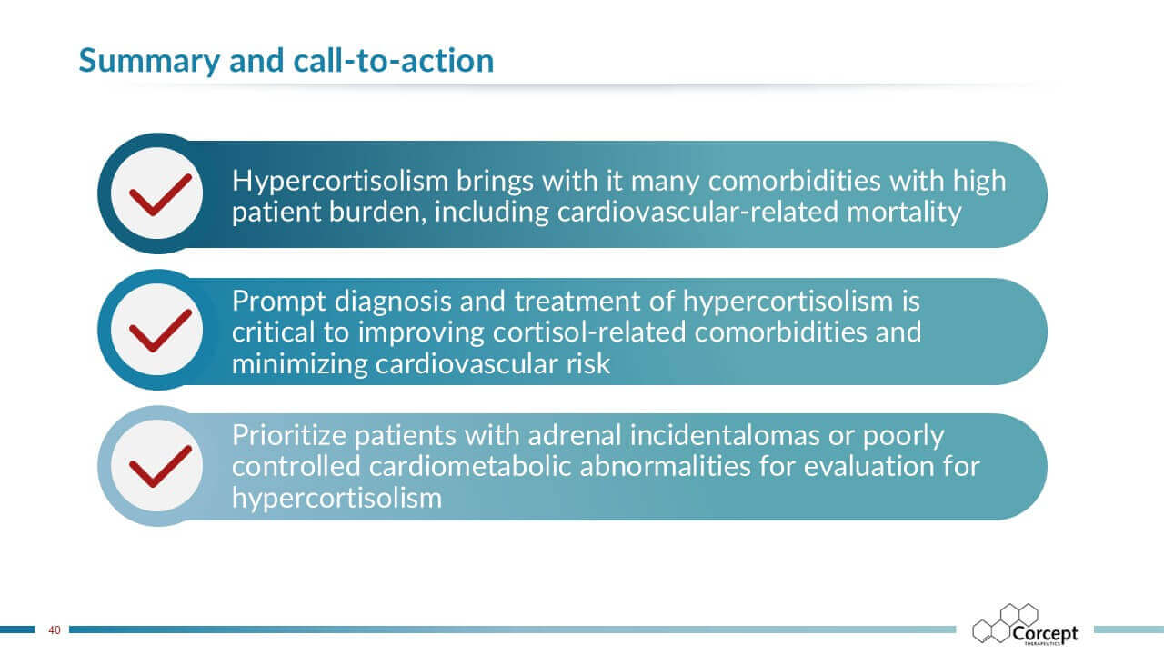 CASCADE is an unbranded educational program dedicated to hypercortisolism. Developed in collaboration with leading U.S. and international faculty, it delivers evidence-based learning designed to improve recognition and diagnosis of this under-recognized condition. Programs are offered live or virtually, sponsored by Corcept and provided at no cost, creating accessible opportunities for clinicians to learn, engage, and apply practical insights in patient care.