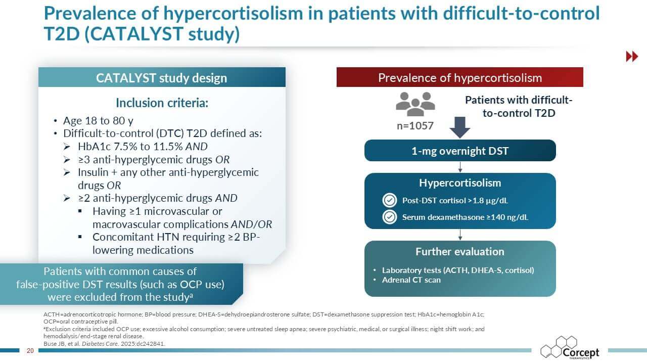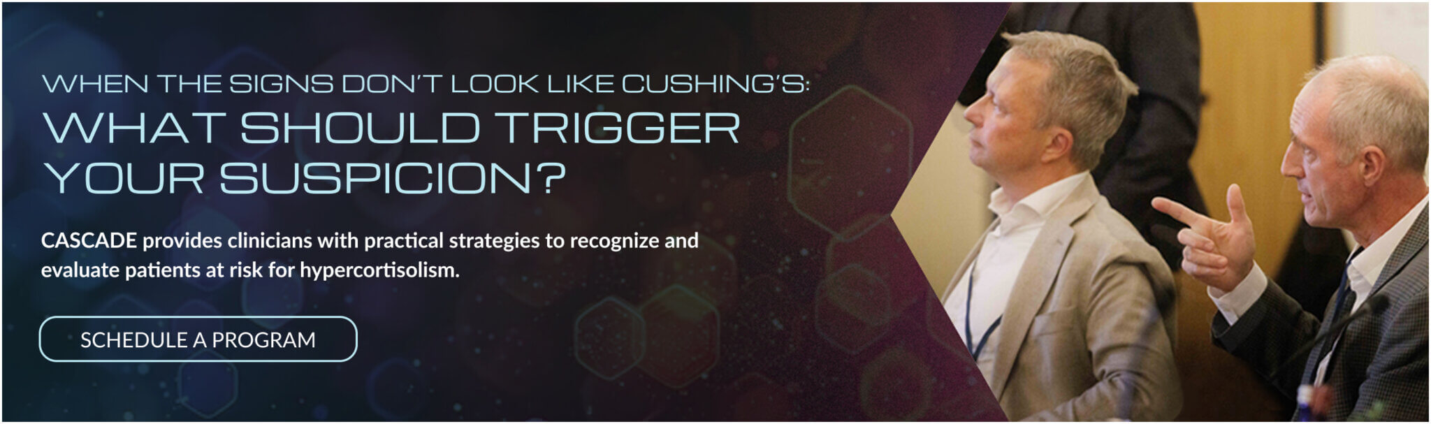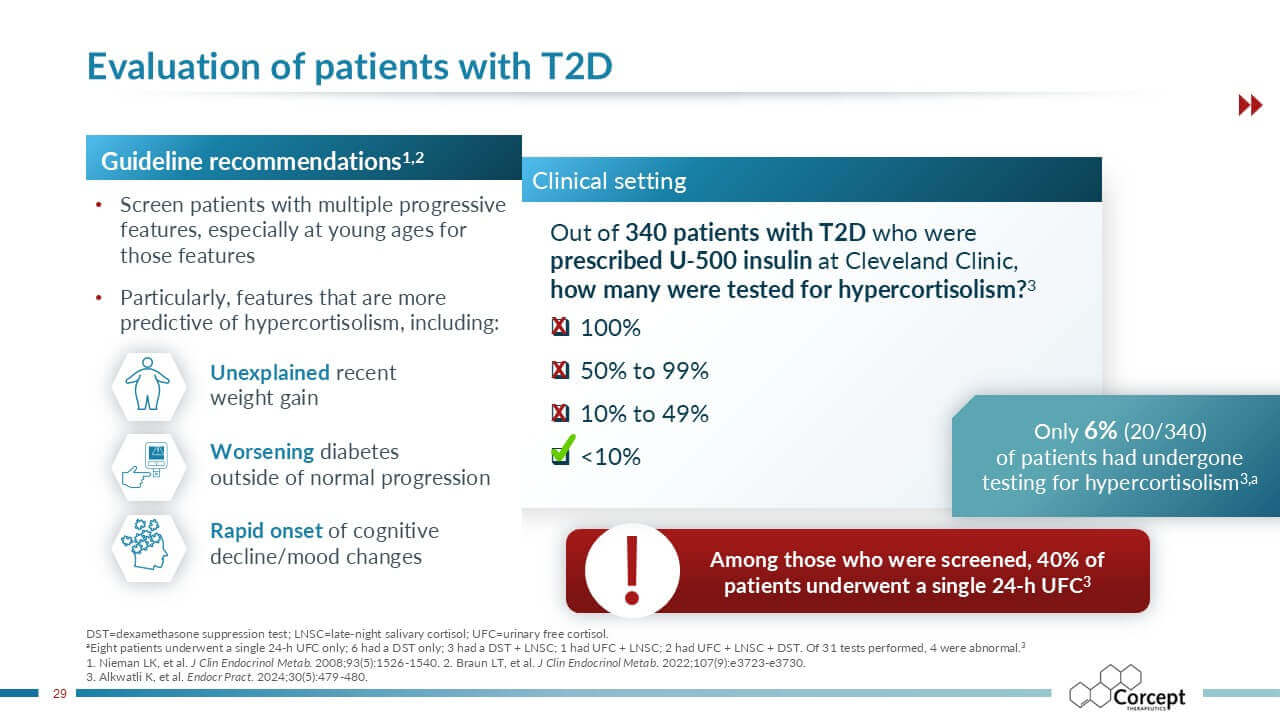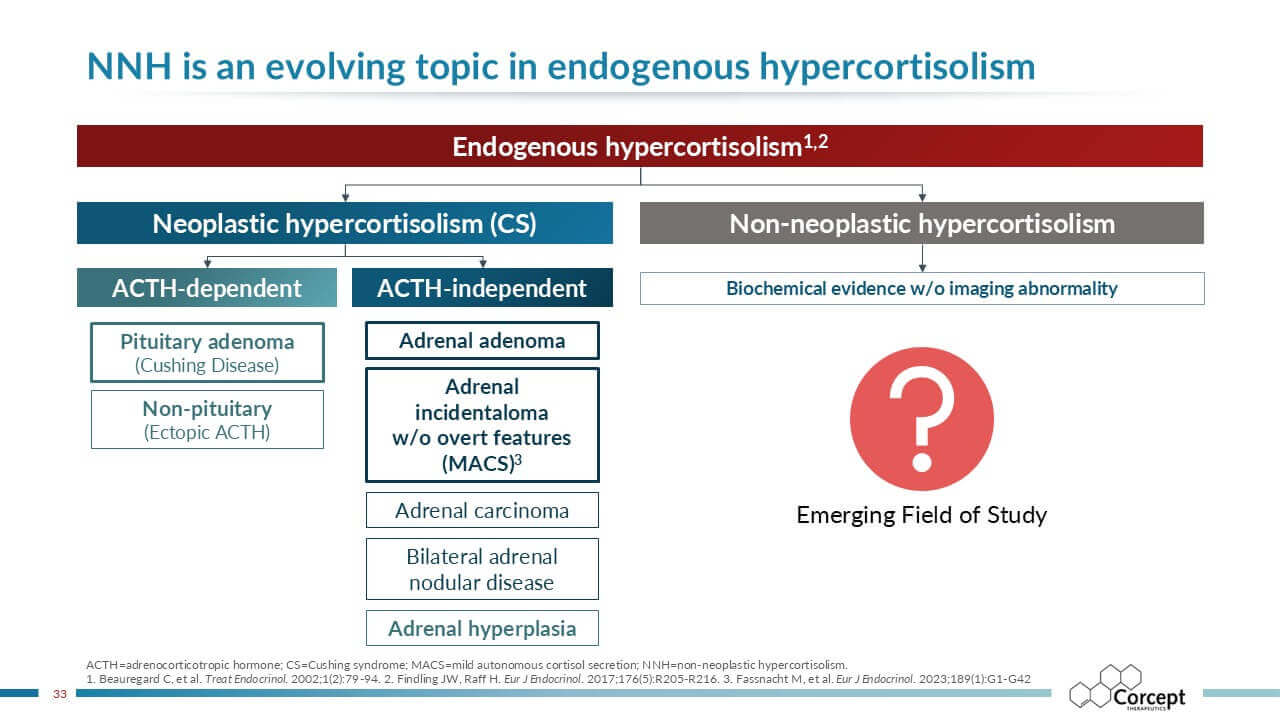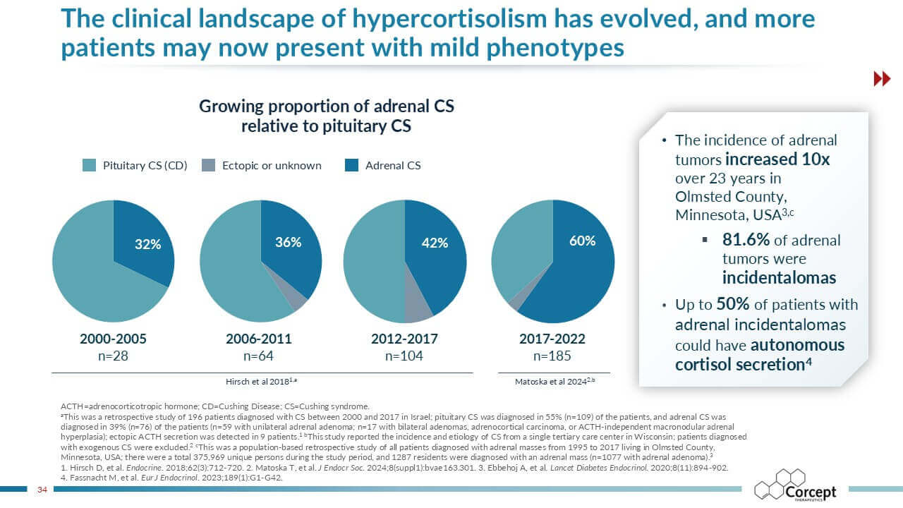CASCADE is an unbranded educational program dedicated to hypercortisolism. Developed in collaboration with leading U.S. and international faculty, it delivers evidence-based learning designed to improve recognition and diagnosis of this under-recognized condition. Programs are offered live or virtually, sponsored by Corcept and provided at no cost, creating accessible opportunities for clinicians to learn, engage, and apply practical insights in patient care.
